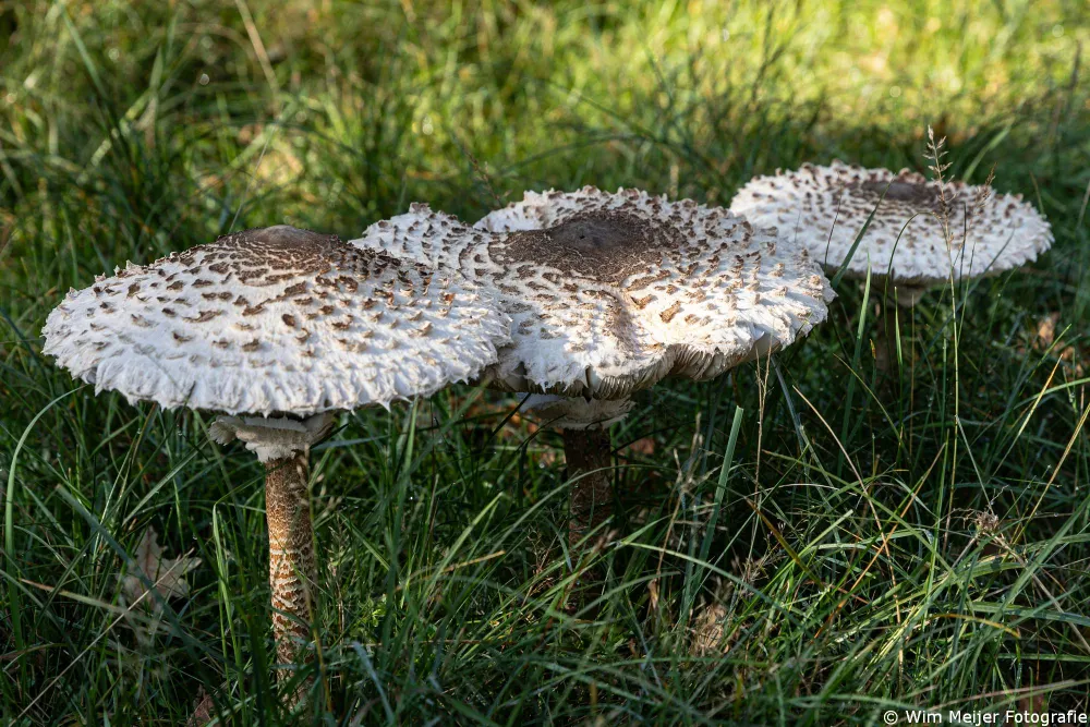 Loop deze nog jonge herfst door de duinen en je kunt er niet omheen: de grote parasolzwam (Macrolepiota procera) staat er dit jaar in ongekende aantallen. Waar je ook kijkt, langs de paden, tussen het gras, onder de duindoorns en op de duinhellingen, overal vind je die paddenstoelenreuzen, met hun koppen van soms wel 40 centimeter doorsnede. Soms solitair, soms koppeltjes en nu en dan ook hele cirkels. Het is alsof de duinen in Noord-Holland plotseling zijn omgetoverd tot XL-champignonkwekerij.